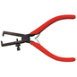 Striptang voor dunne draden. Smalle knipdelen. Afstelling van de knipdiepte door aanslag. Omhuld met PVC