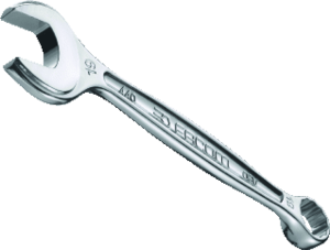 Facom ringsteeksleutel, lengte 7.1mm, sleutelwijdte steek 9mm, sleutelwijdte steek (inch) overig, kopbreedte steek 21.2mm, kopbreedte dop/ring/ratel 14.2mm, kophoogte steek 4.7mm, 12 hoeken, oppervlaktebescherming verchroomd, gewicht 35g, norm DIN ISO1711-1.DIN ISO691