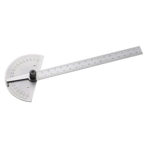 Gerectificeerd rvs. Basis van het segment verdeeld in mm. Omgekeerde dubbele verdeling van 0 tot 180°. Ø van het segment: 85 mm. Lengte van de liniaal: 170 mm. Eenvoudig afleesbaar met een indexlampje aan de binnenkant. Gewicht: 150 g.