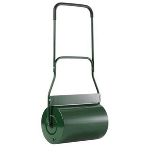 Metalen gazonrol voor het onderhoud van gazons. Rol van geverfd metaal Ø 32 cm, breedte 49 cm. Reinigingsschraper over de volledige lengte. Vullen met water of zand (40 l.).