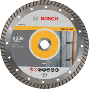 Diamantdoorslijpschijf Universal Turbo 180x 22,23 x 2,5 x 10, Asgat Ø: 22.23 mm, Ø: 18 cm, Model: BEST FOR UNIVERSAL, Max. rotatiesnelheid: 8500 omw/min, Gebruik: Ontworpen om in verschillende bouwmaterialen te snijden en goed gevormde snijkanten te bieden, Voor materiaal: Hout, Gebruik: Knippen, snijden & zagen, Type nr.: 2608602396
