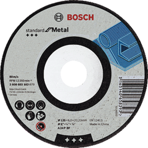 Bosch slijpschijf, toepassing afbramen, geschikt voor metaal, dikte 6mm, boringsdiameter 22.23mm, geschikt voor constructiestaal, komschijf, geschikt voor gereedschapsstaal, geschikt voor gietijzeren buis, schijf hard, schijfdiameter 125mm