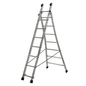 Reformladder met wijduitlopende basis, Materiaal: Aluminium, Opengeklapte hoogte: 3.9 m, Werkhoogte opengeklapt: 4.8 m, Aantal delen: 2, Aantal treden: 7+8, Ingeklapte hoogte: 2.5 m, Leunladder hoogte: 3.7 m, Werkhoogte ingeklapt: 3.4 m, Lengte vloeroppervlak: 1.62 m, Breedte vloeroppervlak: 0.83 m, Lengte trede: 303 mm, Breedte trede: 25.5 mm, Max. belasting: 150 kg, Certificering: Frans decreet 96-333, Hoogte tussen 2 treden: 280 mm, Gewicht: 9.45 kg, NF: nee