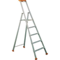Professionele trapladder voor zeer intensief gebruik. Zeer veilige, verwisselbare antislip-laddervoeten. Scharnieren met polyamide inzetstuk: loopt niet vast, geen slijtage. Gietijzeren voetensteun van slipvast aluminium. Geïntegreerde gereedschapshouder met deksel en haak voor emmer.