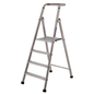 Te gebruiken voor openbare werken: uitzonderlijke stabiliteit en bestendigheid! Aluminium trapladder met reling en kantelbeveiliging aan de voorzijde. Ronde buisstaanders van aluminium, extreem star en robuust. Comfortabel: groot platform en extra brede treden. Zeer veilig: treden met gegoten eindstukken die draaien tegengaan. Holle voet past zich aan elk type ondergrond aan.
