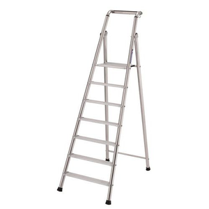 Trapladder Super Intensif, Toegangshoogte: 3.57 m, Platform hoogte: 1.67 m, Aantal treden incl. platform: 7, Lengte platform: 390 mm, Breedte platform: 382 mm, Hoogte veiligheidsrail: 0.70 m, Materiaal: Aluminium, Certificering: Frans decreet 96-333 Warenwet Draagbaar Klimmaterieel, Max. belasting: 150 kg, Staander Ø: 50 mm, Gewicht: 15.5 kg, Ingeklapte breedte: 0.31 m, Ingeklapte hoogte: 2.67 m, Breedte vloeroppervlak: 1.46 m, Lengte vloeroppervlak: 0.78 m