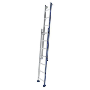 Lichtgewicht ladder uit 2 delen, eenvoudige plaatsing, ideaal voor gemiddelde hoogte. Vergrendeling van het schuifelement voor optimale toegangsbeveiliging. Sluithaken van gegoten aluminium voor bevestiging op alle ondergronden. Zeer veilige omhullende voeten met slijtage-indicator en antislipeigenschappen. Zeer bestendige treden, driedubbel gefelst. Goed om te weten: voor ultra-intensief gebruik op een vlakke ondergrond.