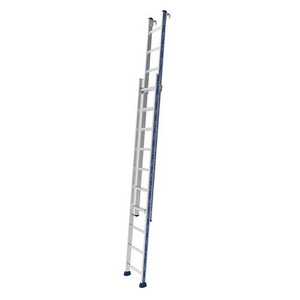 Lichtgewicht ladder uit 2 delen, eenvoudige plaatsing, ideaal voor gemiddelde hoogte. Vergrendeling van het schuifelement voor optimale toegangsbeveiliging. Sluithaken van gegoten aluminium voor bevestiging op alle ondergronden. Zeer veilige omhullende voeten met slijtage-indicator en antislipeigenschappen. Zeer bestendige treden, driedubbel gefelst. Goed om te weten: voor ultra-intensief gebruik op een vlakke ondergrond.