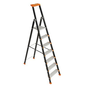 Trapladder comfortabel Kolos, Toegangshoogte: 3.59 m, Platform hoogte: 1.59 m, Aantal treden incl. platform: 7, Lengte platform: 250 mm, Breedte platform: 280 mm, Materiaal: Aluminium, Certificering: Frans decreet 96-333, Max. belasting: 150 kg, Goedkeuring: Besluit 36 333, Aantal sporten: 6, Diepte sport: 110 mm, Gebruik: Ultra-intensief gebruik, Ingeklapte hoogte: 2.44 m, Breedte vloeroppervlak: 540 mm, Lengte vloeroppervlak: 1370 mm, Kleur: Zwart/oranje