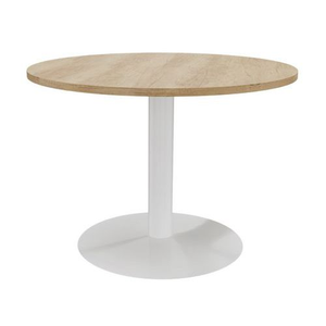 Vergadertafel Astro rond centrale poot Ø 100 cm, Type onderstel: Centrale, Hoogte: 72 cm, Breedte: 100 cm, Totale diepte: 100 cm, Vorm: Rond, Tafelblad materiaal: Hardboard, Tafelblad kleur: Eiken, Vermogen (aantal personen): 4, Onderstel kleur: Wit, Tafel Ø: 100 cm, Rand materiaal: Schokbestendig ABS, Montage: Zelfbouw, Selectie telewerken: nee, Onderstel materiaal: Metaal, Onderstel materiaal: Staal, Eco-verantwoordelijke aanpak: ja, Model: Ronde vergadertafel 4 poten, Type: Vergadertafel, Dikte tafelblad: 25 mm, PEFC licentie: 10-31-1004, Coating: Melamine
