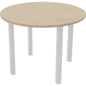 Vergadertafel Arche Ø 100 cm, Type onderstel: 4 poten, Hoogte: 72 cm, Breedte: 100 cm, Vorm: Rond, Tafelblad materiaal: Hardboard, Tafelblad kleur: Eiken, Onderstel kleur: Wit, Tafel Ø: 100 cm, Meubellijn: Astro, Rand materiaal: Schokbestendig ABS, Montage: Zelfbouw, Selectie telewerken: nee, Onderstel materiaal: Metaal, Eco-verantwoordelijke aanpak: ja, Model: Vergadertafel, Type: Vergadertafel, Dikte tafelblad: 25 mm, PEFC licentie: 10-31-1004, Coating: Melamine