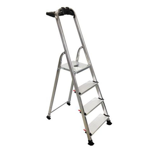 Aluminium trapladder met XXL-treden, zeer stabiel dankzij de vaste, omsluitende antislipvoeten. Goed beveiligd dankzij de relingen. Gerust idee: het plateau van corrosiebestendig staal met beveiliging tegen omhoog komen. Stabiel dankzij het gepatenteerde tredebevestigingssysteem. Het pluspunt? Hij is bijzonder praktisch dankzij de multifunctionele gereedschapshouder (met plek voor schroeven en boormachine, met emmerhaak) en de XXL-treden van 12 cm.