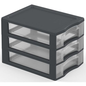 Van 40% gerecyclede kunststof. Eenvoudig stapelbaar. Lades met aanslagen tegen eruit vallen. Kruistop voor het plaatsen van kleine voorwerpen. Ergonomische handgreep op elke lade.