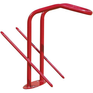 Fietsenrek voor 2 fietsen voor antidiefstalbeugel, Totale lengte: 550 mm, Aantal plaatsen: 2, Model: Fietsenrek voor 2 fietsen met antidiefstalbeugel, Totale hoogte: 820 mm, Materiaal: Staal, Kleur: Rood, Paal Ø: 40 mm, Gewicht: 8.20 kg, Recyclebare verpakking: Ja - 100%, Recyclebaar product: Ja - 100%