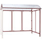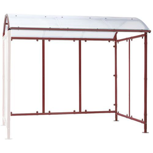 Koepelvormige stalling voor tweewielers, Totale lengte: 3.22 m, Totale diepte: 2.45 m, Totale hoogte: 2.69 m, Kleur: Bordeauxrood, RAL: 3005, Frame materiaal: Staal + polycarbonaat + transparant paneel PMMA, Montage: Zelfbouw, Recyclebare verpakking: Ja - 100%, Recyclebaar product: Ja - 100%, Wand materiaal: Transparant paneel van PMMA (transparant), Nuttige diepte: 2.06 m, Dak materiaal: Polycarbonaat kanaalplaat, Nuttige hoogte: 2.12 m, Nuttige lengte: 3 m