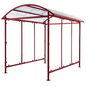 Koepelvormige fietsenstalling, Totale lengte: 3.22 m, Totale diepte: 2.45 m, Totale hoogte: 2.69 m, Kleur: Bordeauxrood, RAL: 3005, Frame materiaal: Staal + polycarbonaat + transparant paneel PMMA, Montage: Zelfbouw, Recyclebare verpakking: Ja - 100%, Recyclebaar product: Ja - 100%, Wand materiaal: Transparant paneel van PMMA (transparant), Nuttige diepte: 2 m, Dak materiaal: Polycarbonaat kanaalplaat, Nuttige hoogte: 2.11 m, Nuttige lengte: 3.13 m