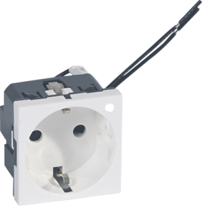 Legrand Mosaic wandcontactdoos (wcd schakelmat.), wit, uitvoering contactdoos CEE 7/3 (type, aardcontact overig, 1 actieve contacten (rond), met signaallamp, 1 eenheid, 2 modules (bij modulair sys, 1 fasen, aansluitwijze steekklem, met verhoogde aanraakbeveiliging, RAL-nummer 9003,