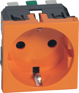 Legrand Mosaic wandcontactdoos (wcd schakelmat.), oranje, uitvoering contactdoos CEE 7/3 (type, aardcontact overig, 1 actieve contacten (rond), 1 eenheid, 2 modules (bij modulair sys, 1 fasen, aansluitwijze steekklem, met verhoogde aanraakbeveiliging, RAL-nummer 2003, geïsoleerde montage