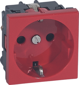 Legrand Mosaic wandcontactdoos (wcd schakelmat.), rood, uitvoering contactdoos CEE 7/3 (type, aardcontact overig, 1 actieve contacten (rond), 1 eenheid, 2 modules (bij modulair sys, 1 fasen, aansluitwijze steekklem, met verhoogde aanraakbeveiliging, RAL-nummer 3020, geïsoleerde montage