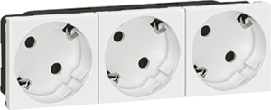 Legrand Mosaic wandcontactdoos (wcd schakelmat.), wit, uitvoering contactdoos CEE 7/3 (type, aardcontact overig, 3 actieve contacten (rond), 3 eenheden, 6 modules (bij modulair sys, 1 fasen, aansluitwijze steekklem, met verhoogde aanraakbeveiliging, RAL-nummer 9003