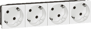 Legrand Mosaic wandcontactdoos (wcd schakelmat.), wit, uitvoering contactdoos CEE 7/3 (type, aardcontact overig, 4 actieve contacten (rond), 4 eenheden, 8 modules (bij modulair sys, 1 fasen, aansluitwijze steekklem, met verhoogde aanraakbeveiliging, RAL-nummer 9003