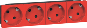 Legrand Mosaic wandcontactdoos (wcd schakelmat.), rood, uitvoering contactdoos CEE 7/3 (type, aardcontact overig, 4 actieve contacten (rond), 4 eenheden, 8 modules (bij modulair sys, 1 fasen, aansluitwijze steekklem, met verhoogde aanraakbeveiliging, RAL-nummer 3020, geïsoleerde montage
