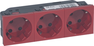Legrand Mosaic wandcontactdoos (wcd schakelmat.), rood, uitvoering contactdoos CEE 7/3 (type, aardcontact overig, 3 actieve contacten (rond), 3 eenheden, 6 modules (bij modulair sys, 1 fasen, aansluitwijze steekklem, met verhoogde aanraakbeveiliging, RAL-nummer 3020