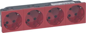 Legrand Mosaic wandcontactdoos (wcd schakelmat.), rood, uitvoering contactdoos CEE 7/3 (type, aardcontact overig, 4 actieve contacten (rond), 4 eenheden, 8 modules (bij modulair sys, 1 fasen, aansluitwijze steekklem, met verhoogde aanraakbeveiliging, RAL-nummer 3020