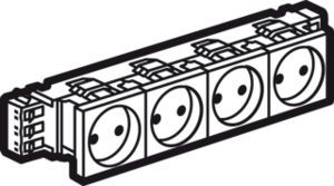 Legrand Mosaic wandcontactdoos (wcd schakelmat.), wit, uitvoering contactdoos CEE 7/3 (type, aardcontact overig, 4 actieve contacten (rond), 4 eenheden, 8 modules (bij modulair sys, 1 fasen, aansluitwijze steekklem, met verhoogde aanraakbeveiliging, RAL-nummer 9003