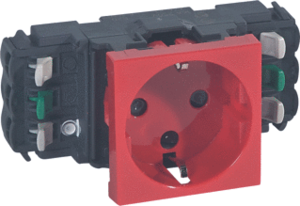 Legrand Mosaic wandcontactdoos (wcd schakelmat.), rood, uitvoering contactdoos CEE 7/3 (type, aardcontact overig, 1 actieve contacten (rond), 1 eenheid, 2 modules (bij modulair sys, 1 fasen, aansluitwijze steekklem, met verhoogde aanraakbeveiliging, RAL-nummer 3020