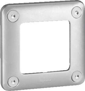 Legrand Soliroc Vandaalbestendig afdekraam schakelmateriaal, metaal, grijs, (bxhxd) 110x110x13.5mm, uitvoering oppervlakte mat, montagerichting horizontaal en verticaal, 1 eenheid, beschermingsgraad (IP) IP55, 1 eenheden horizontaal, slagvastheid IK10, RAL-nummer 9033, kwaliteit overig,