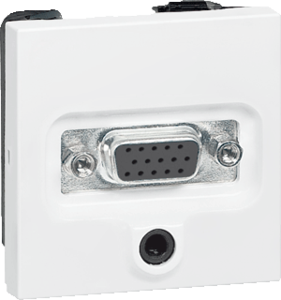 Legrand Mosaic inzetplaat schakelmateriaal, kunststof, wit, gebruik D-sub 15-polig, samenstelling basiselement met centrale, inbouw (stucwerk), uitvoering oppervlakte mat, variant wit, 1 aansluiting, T.b.v. Jack 3.5mm, 2 modules (bij modulair sys, beschermingsgraad (IP) IP40,