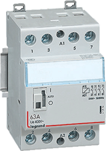 Legrand LEXIC DIN installatiehulpschakelaar modulair, 4 contacten als maakcontact, nevenapparaat mogelijk, beschermingsgraad (IP) IP2X, spanningstype van de bedrijfsspanni AC, bedrijfsspanning (meetspanning) 400V, nom. bedrijfsstroom 63A, inbouwdiepte 44mm, spanningstype van de bekrachtigings AC,