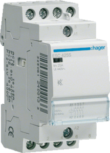 Hager installatiehulpschakelaar modulair, 4 maakcontacten, nevenapparaat mogelijk, beschermingsgraad (IP) IP2X, spanningstype van de bedrijfsspanni AC, bedrijfsspanning (meetspanning) 400V, nom. bedrijfsstroom 25A, inbouwdiepte 60mm, spanningstype van de bekrachtigings AC,