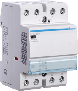 Hager installatiehulpschakelaar modulair, 4 maakcontacten, nevenapparaat mogelijk, beschermingsgraad (IP) IP2X, spanningstype van de bedrijfsspanni AC, bedrijfsspanning (meetspanning) 400V, nom. bedrijfsstroom 40A, inbouwdiepte 60mm, spanningstype van de bekrachtigings AC,