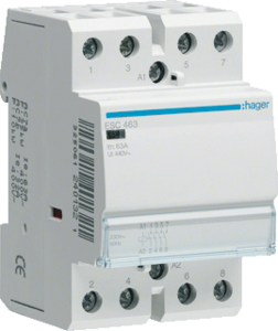 Hager installatiehulpschakelaar modulair, 4 maakcontacten, nevenapparaat mogelijk, beschermingsgraad (IP) IP2X, spanningstype van de bedrijfsspanni AC, bedrijfsspanning (meetspanning) 400V, nom. bedrijfsstroom 63A, inbouwdiepte 60mm, spanningstype van de bekrachtigings AC,