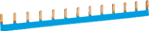 Hager KB kamrail, blauw, lengte 228mm, diameter 10mm², geïsoleerd, uitvoering elektrische aansluiting pen, 1 pool, delingsmaat 17.8mm, 1 fasen, nom. continustroom Iu 63A, max. nom. bedrijfsspanning Ue 415V, geschikt voor aantal apparaten 13, toegekende stootspanning 4kV,