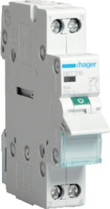 Hager SBT inbouwschakelaar modulair, nom. (meet)stroom 32A, schakelfunctie uitschakelaar met control, 2 contacten als maakcontact, 2 polen, beschermingsgraad (IP) IP20, breedte in module-eenheden 1, inbouwdiepte 68mm, kapje (kalotje) overig, kortsluitvastheid (Icw) 0.48kA, lamptype LED,
