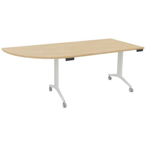 Tafel met draaiplateau Avel met geïntegreerde hoek met witte voet op wielen, Type onderstel: I-poot, Hoogte: 74 cm, Breedte: 200 cm, Vorm: Rechthoek, Tafelblad kleur: Eiken, Type: Klaptafel, Onderstel kleur: Wit, Diepte: 80 cm, Tafelblad materiaal: Gemelamineerd, Onderstel materiaal: Metaal, Randen materiaal: ABS, Special Covid-19: nee, Selectie telewerken: nee, Recyclebare verpakking: Ja - 100%, Gerecyclede verpakkingen: 100 %, Gerecycled product: 30 %, Eco-verantwoordelijke aanpak: ja, Dikte tafelblad: 25 mm