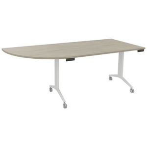 Tafel met draaiplateau Avel met geïntegreerde hoek met witte voet op wielen, Type onderstel: I-poot, Hoogte: 74 cm, Breedte: 200 cm, Vorm: Rechthoek, Tafelblad kleur: Grijs, Type: Klaptafel, Onderstel kleur: Wit, Diepte: 80 cm, Tafelblad materiaal: Gemelamineerd, Onderstel materiaal: Metaal, Randen materiaal: ABS, Special Covid-19: nee, Selectie telewerken: nee, Recyclebare verpakking: Ja - 100%, Gerecyclede verpakkingen: 100 %, Gerecycled product: 30 %, Eco-verantwoordelijke aanpak: ja, Dikte tafelblad: 25 mm