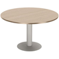 Vergadertafel Phylos, Type onderstel: Centrale, Hoogte: 72.5 cm, Vorm: Rond, Tafelblad materiaal: Gemelamineerd, Tafelblad kleur: Eiken, Onderstel kleur: Grijs, Meubellijn: Phylos, Rand materiaal: Gemelamineerd, Selectie telewerken: nee, Onderstel materiaal: Metaal, Type: Vergadertafel, tonvormig, Dikte tafelblad: 25 mm