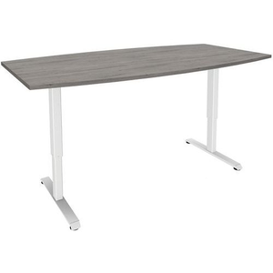 Elektrische tonvormige tafel Nivo L200xD100 cm, Type onderstel: T-poot, Hoogte: 74 cm, Breedte: 200 cm, Totale diepte: 100 cm, Vorm: Tonvormig, Tafelblad materiaal: Gemelamineerd, Tafelblad kleur: Grijs, Onderstel kleur: Wit, Selectie telewerken: nee, Recyclebare verpakking: Ja - 100%, Gerecyclede verpakkingen: 95 %, Recyclebaar product: Ja - 100%, Gerecycled product: 65 %, Eco-verantwoordelijke aanpak: ja, Type: Tonvormige tafel, Tafelbreedte: 200 cm