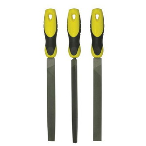 • Hoogwaardig koolstofstaal voor permanent slijpen • Ergonomisch, antislip ontwerp voor hoog comfort • Dubbele handgreep vermindert trillingen • Hangoog voor gemakkelijk opbergen • Set van 3 halfzoete vijlen: 200 mm Vlak, 200 mm Halfrond en 200 mm Driehoekig
