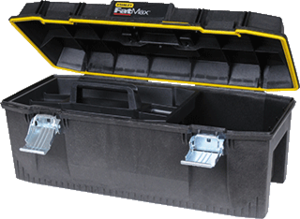 Stanley FatMax Heavy Duty gereedschapskist/-tas, kunststof, zwart/geel, (hxbxd) 267x583x305mm, uitvoering gereedschapskist, kwaliteit acrylnitril butadien styr, hangslotbeugel, uitneembaar vak