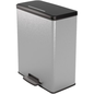 Rechthoekige pedaalemmer van kunststof in metaallook. Gemaakt van 70% gerecyclede materialen. Voorzien van twee binnenemmers (2x26L) van kunststof. Makkelijk schoon te maken.