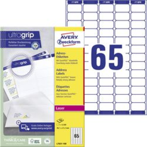 Avery Mini adresetiketten Ultragrip Zelfklevend 38,1 x 21,2 mm Wit 100 Vellen van 65 Etiketten
