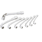 Set van 8 doorsteekpijpsleutels 6X12-kant in mm. Opening rechte kant 6-kant Opening gebogen kant 12-kant. Standaard ponsen. Om hoge koppels te kunnen toepassen. Gesatineerde afwerking. Gewicht: 1200 g.