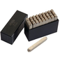 Ponsen in koolstofstaal, vernikkeld, voor markering van staal met hardheid van 60 HRC. Hoofdletters in spiegelschrift gegraveerd voor juiste markering. Scherpe gravure vermijdt braamrand bij het slaan. Vermelding van de letter op het lichaam. Geleverd in plastic box met deksel. Zelfde afdruk voor letter M en W: 25 letters.