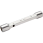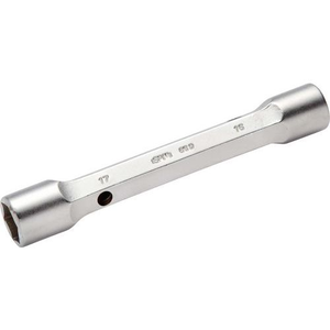 Pijpsleutel recht 25x28 mm. Twee verschillende openingen per sleutel. Hexagonale romp en 6-kant kop. Gechromeerde afwerking. Gewicht 450 g.