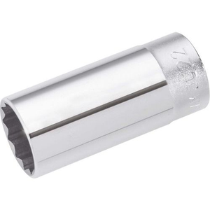 Dop 3/8 inch lang 12-kant. Gesmeed in staal met chroom-vanadium. Profiel Surface Drive SAM. Ondersteuning van de dop op de accessoires 3/8 inch met kogel Gechromeerde uitvoering, gepolijst en glanzend.